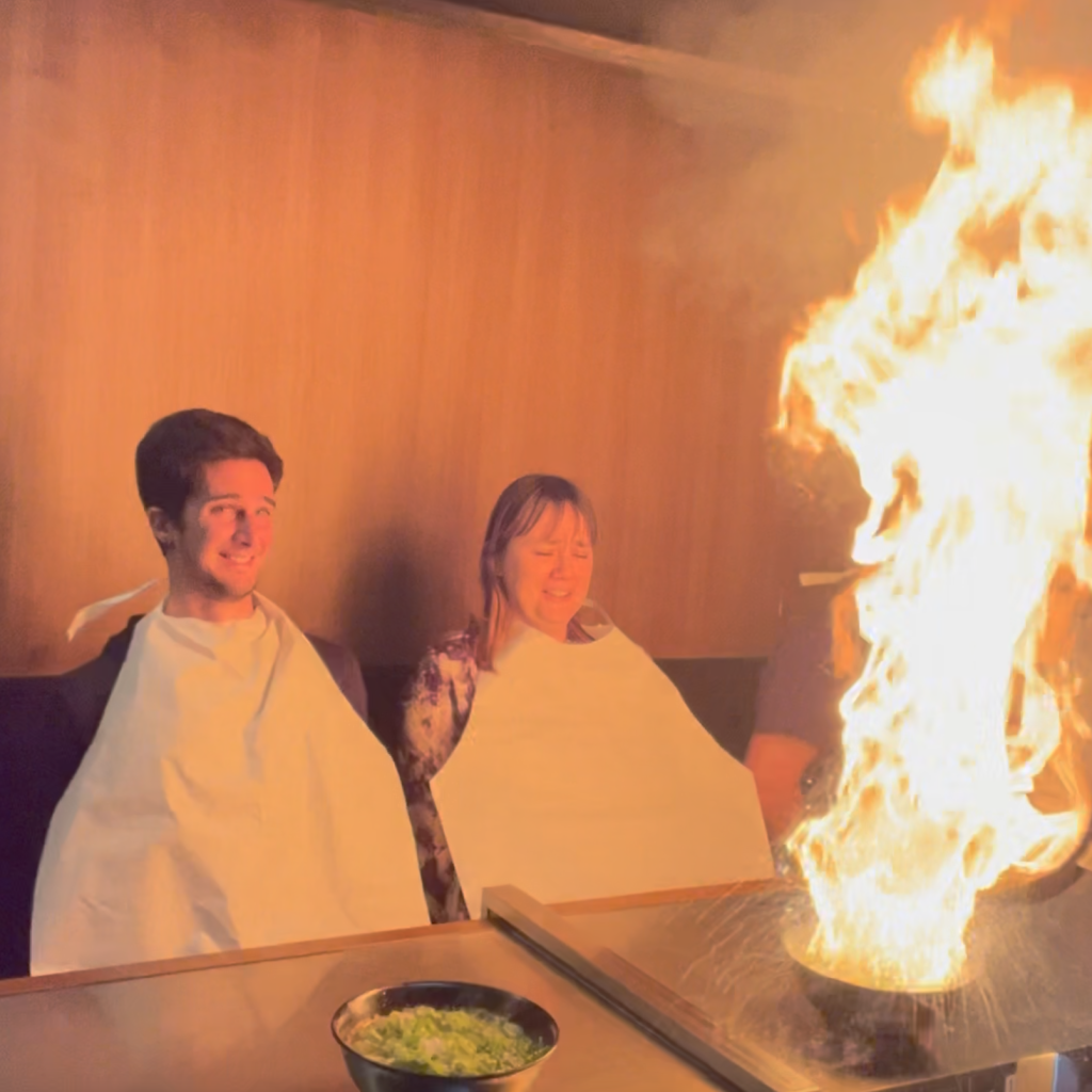 5:30 PM/6:00 PM Menbaka Fire Ramen Celebrate a successful second day in Kyoto with dinner and a show at Menbaka Fire Ramen. And when I say “fire,” I mean it literally—they set your ramen on FIRE right in front of you with a fireball that almost goes to the ceiling. Don’t worry about your eyebrows though; they’ve got this down to a science. They will even take your phone and expertly record the entire experience for you from one of several selfie sticks they have propped up behind the counter.
